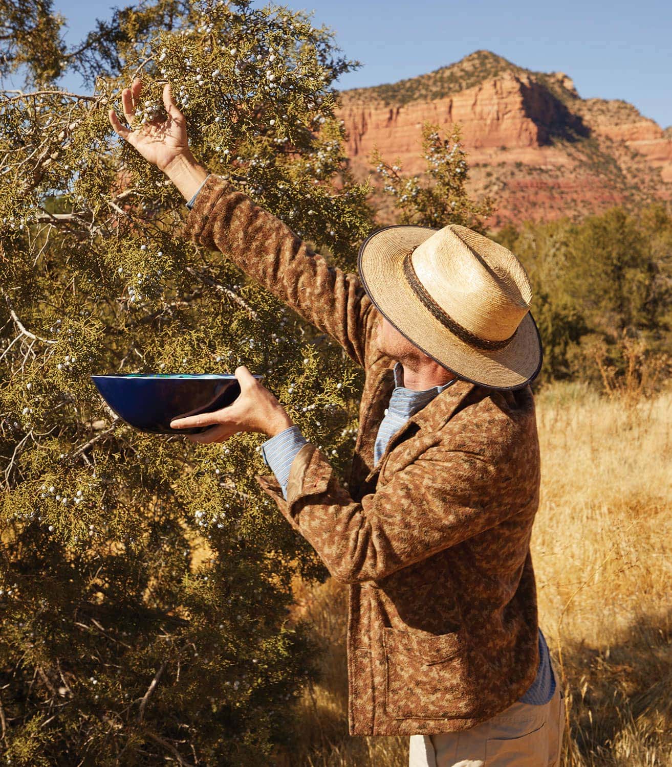 “Single-seed and shaggy bark—the berries themselves are almost impossible to tell apart on their own,” says Lawrence, noting that single-seed is a bit of a misnomer, as the plant can sometimes have two seeds. “The flavor is a lot more earthy, and kind of bready and sweet. It’s less floral, less spiky [than common juniper]; it feels more Arizona. It has a warm depth to it.” The alligator juniper, Giddings adds, is “a little meatier.”